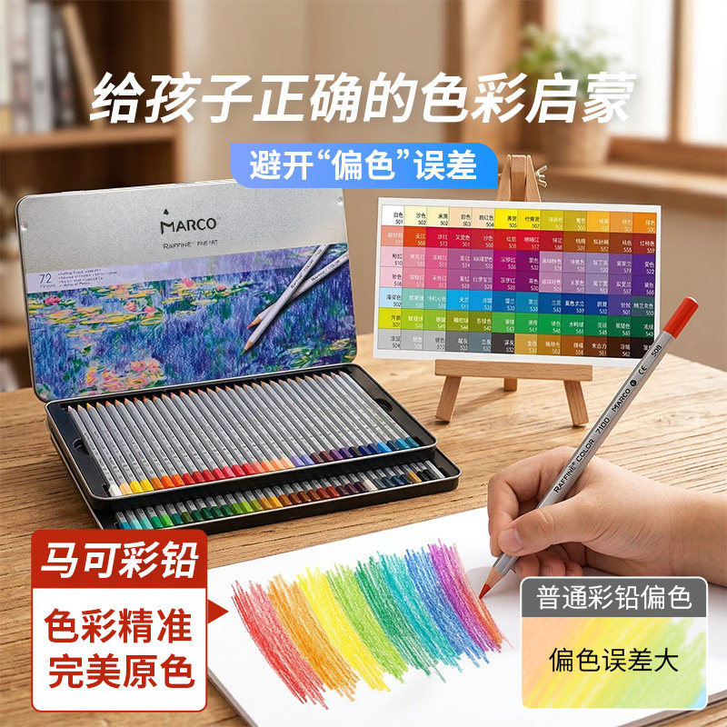 Marco马可彩铅美术生专用彩色铅笔油性彩铅笔小学生专用48色彩色铅笔绘画专用彩铅初中生专用彩铅笔幼儿园