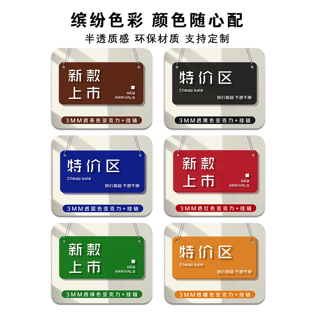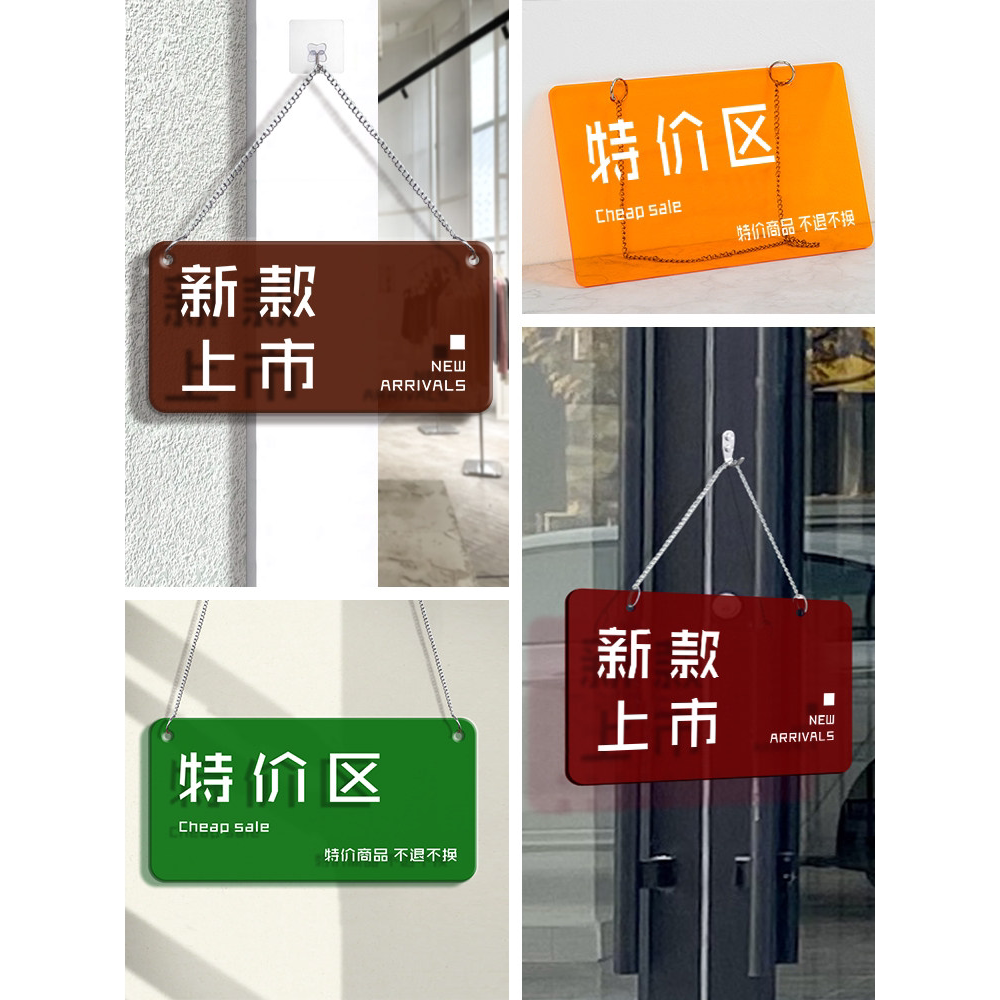 新品上市展示牌服装店新品新款上市展示牌挂牌亚克力五折特价促销牌店长推荐牌ins风门口吊牌彩色亚克力定制