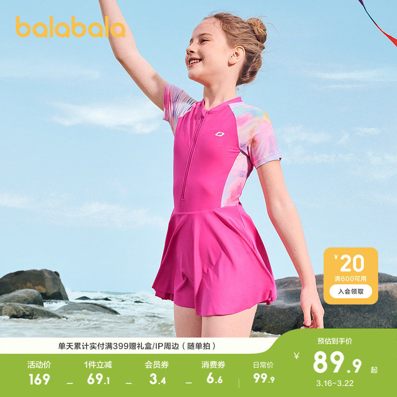 巴拉巴拉女童泳衣儿童泳装中大童防晒连体泳装晕染印花俏皮泡温泉