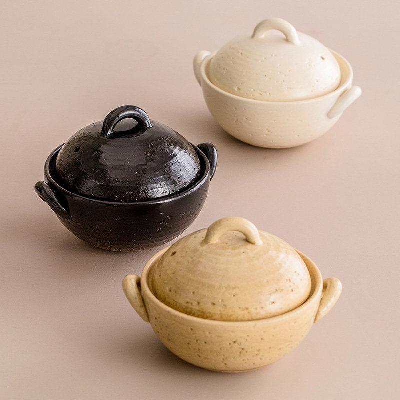 日本进口万古烧沙锅家用梨圆小土锅耐高温燃气灶专用煲汤炖汤炖肉