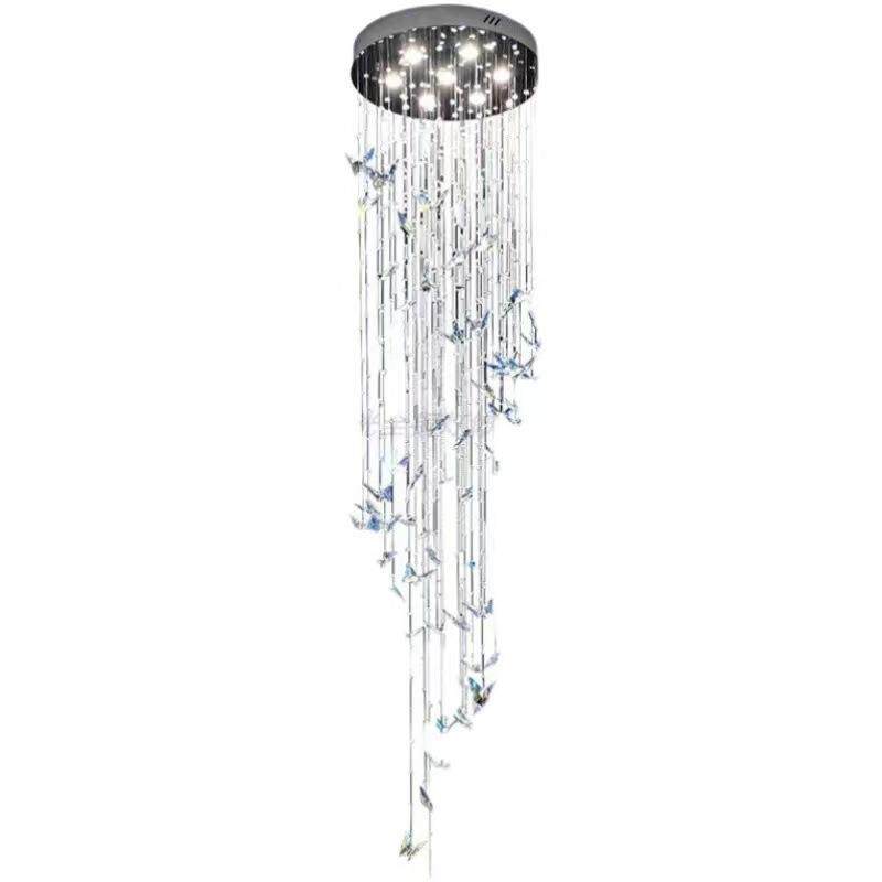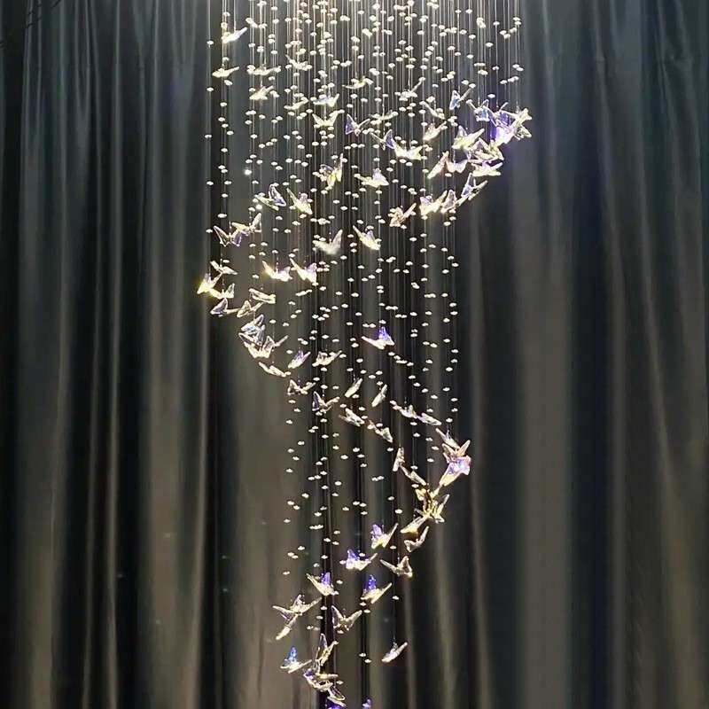 复式楼旋转楼梯长吊灯客厅中空别墅简约后现代酒店蝴蝶水晶装饰灯
