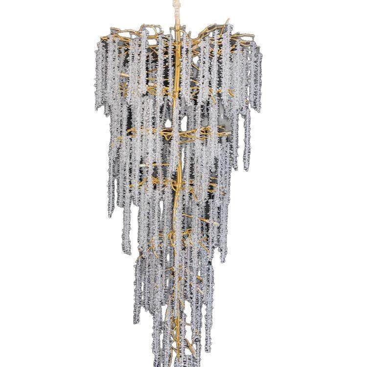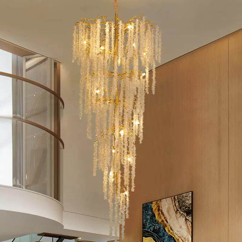 轻奢复式楼客厅水晶大吊灯楼梯非标工程别墅大厅中空铝材水晶树枝