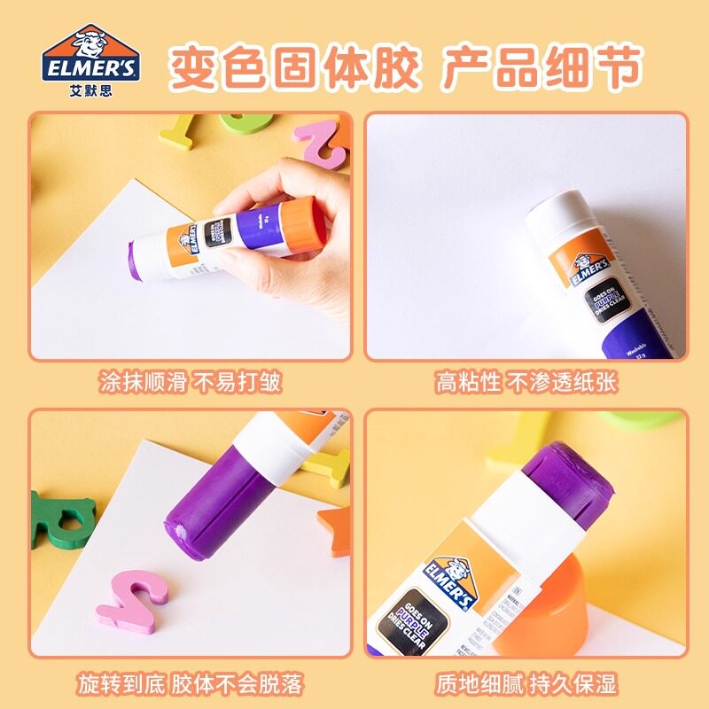 艾默思牛头胶棒遮眉拼图胶水幼儿园小学生专用强粘紫色变色固体胶