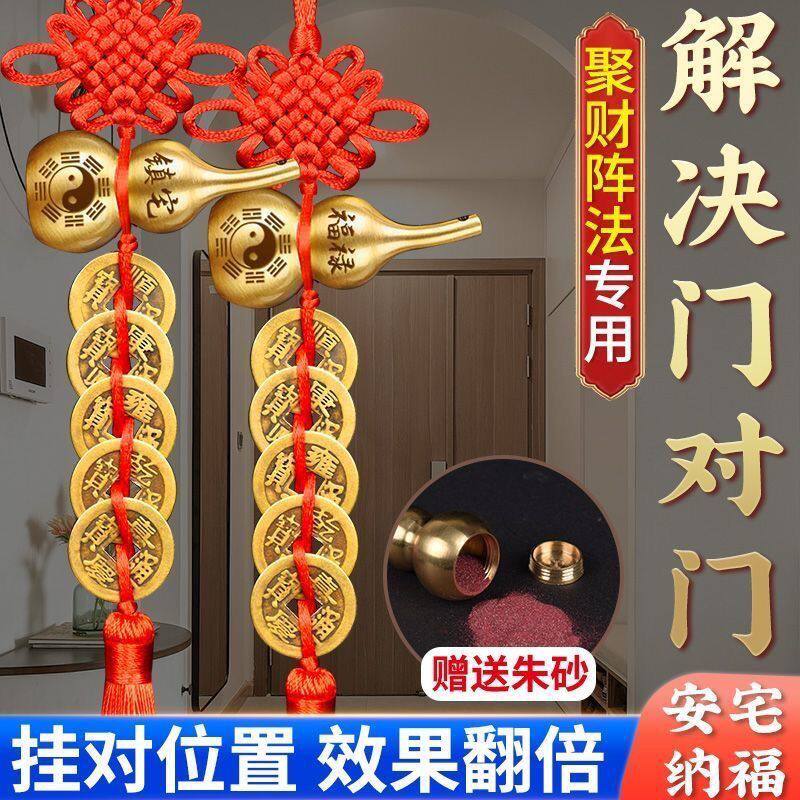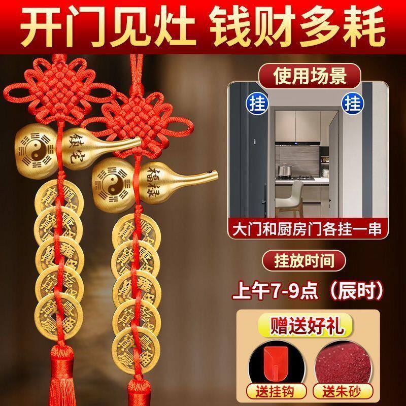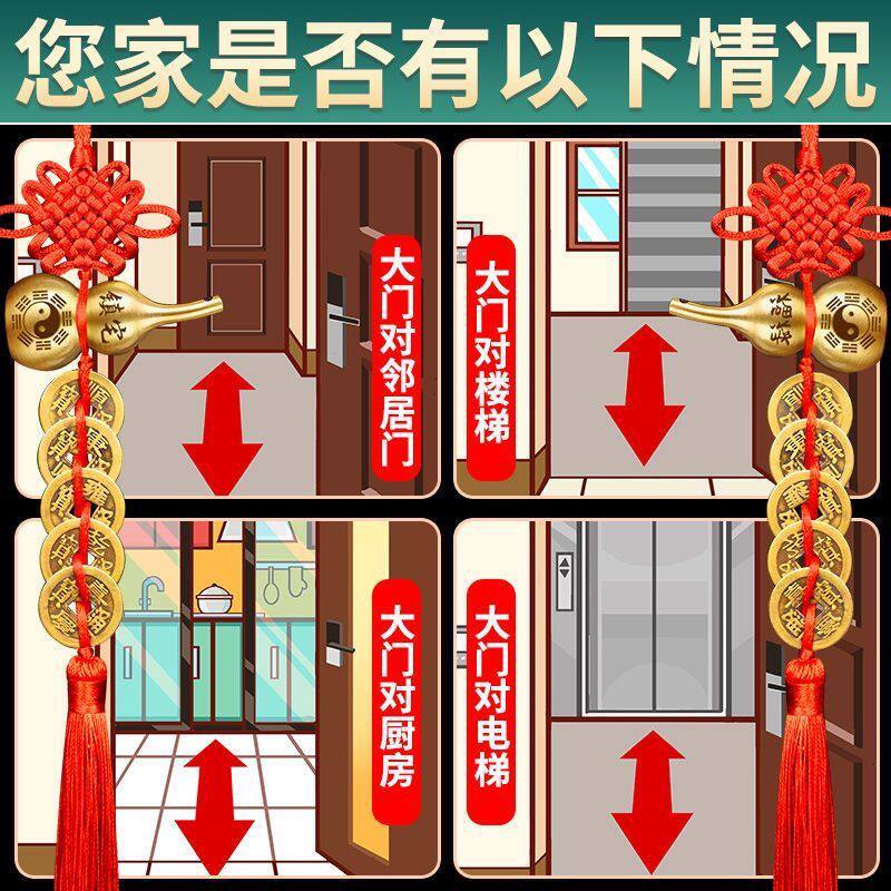 五帝钱门对门纯铜葫芦真品铜钱串大门口卧室压门槛入户吉祥结挂件