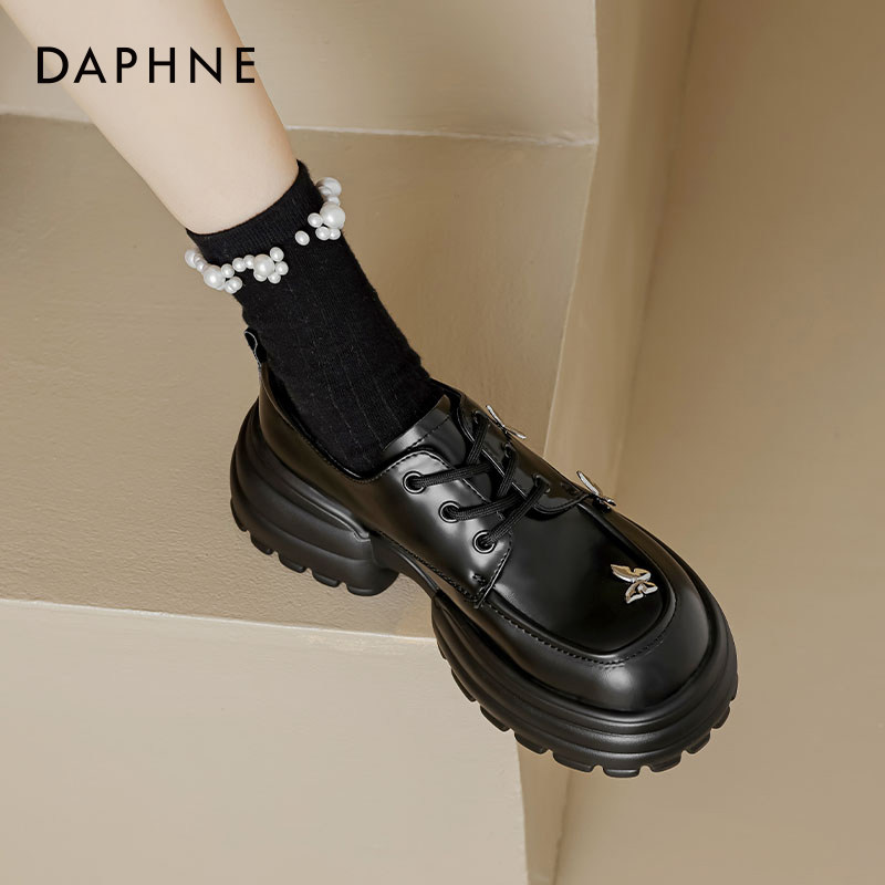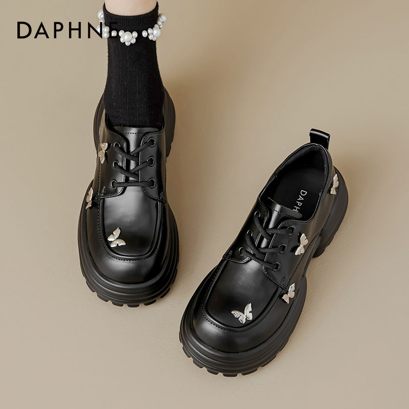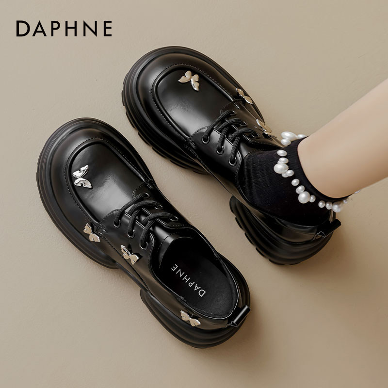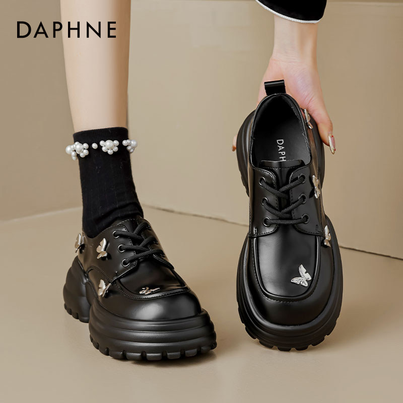 达芙妮厚底乐福鞋女2026春季新款女鞋小个子增高黑色英伦风小皮鞋