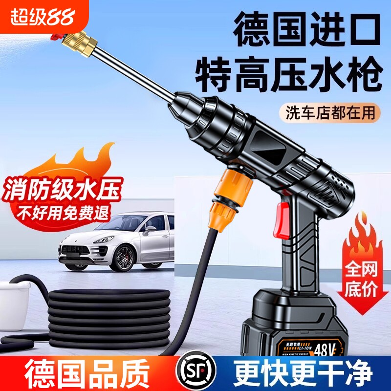 新款高压水枪无线洗车机家用锂电池增压电动水抢洗地刷车专用神器