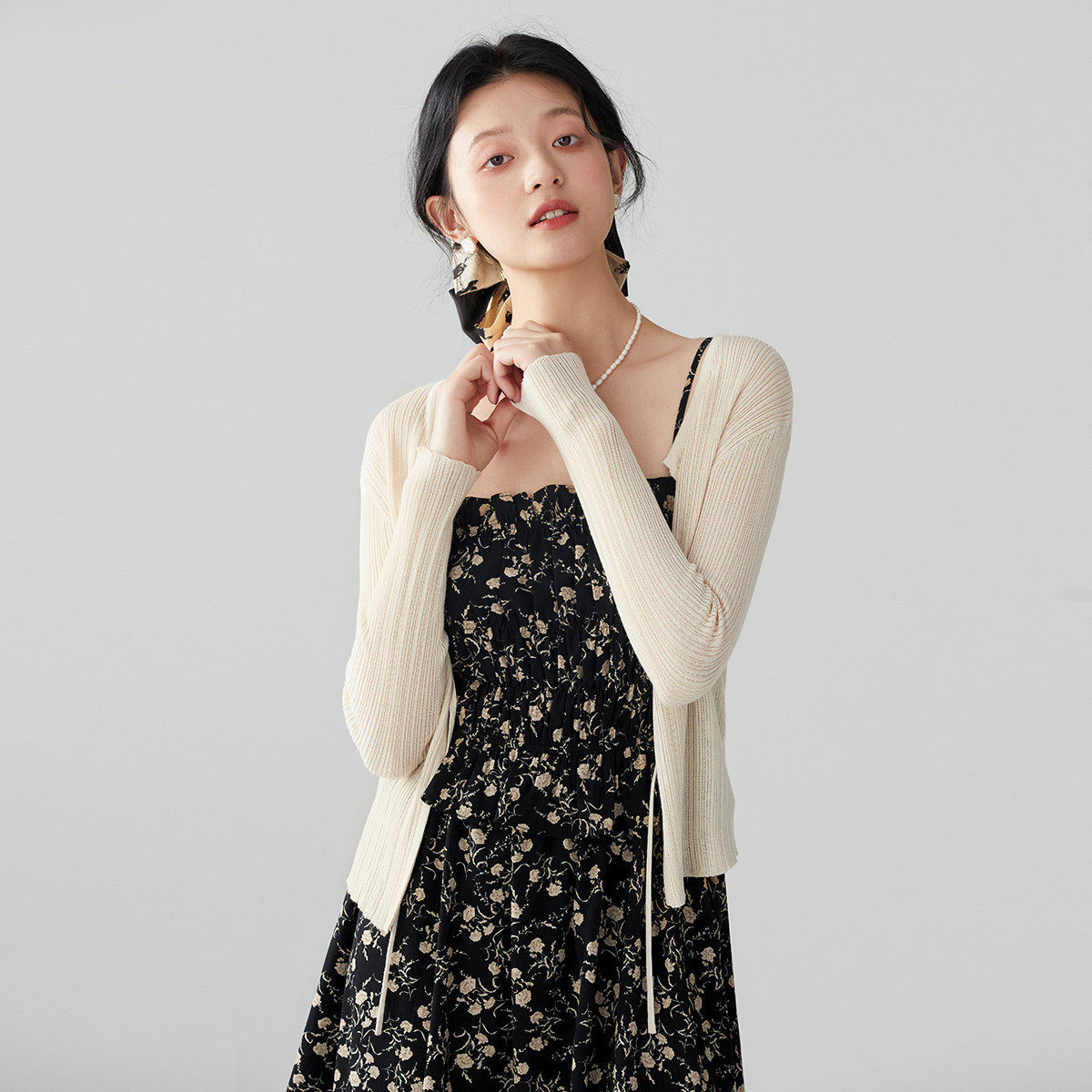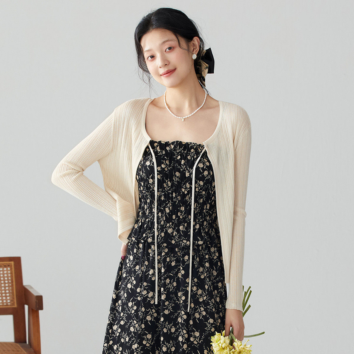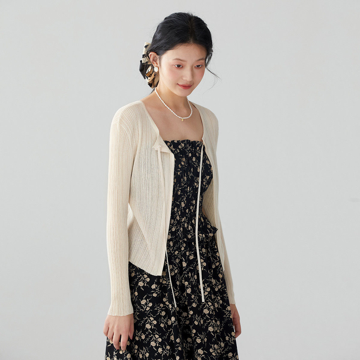 one more2025夏季薄款系带披肩开衫女针织外搭上衣高级感短款罩衫