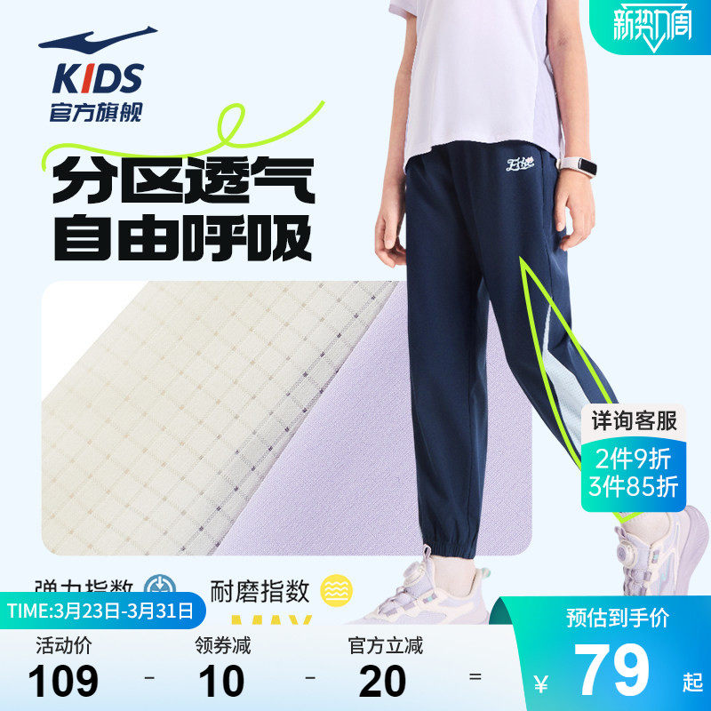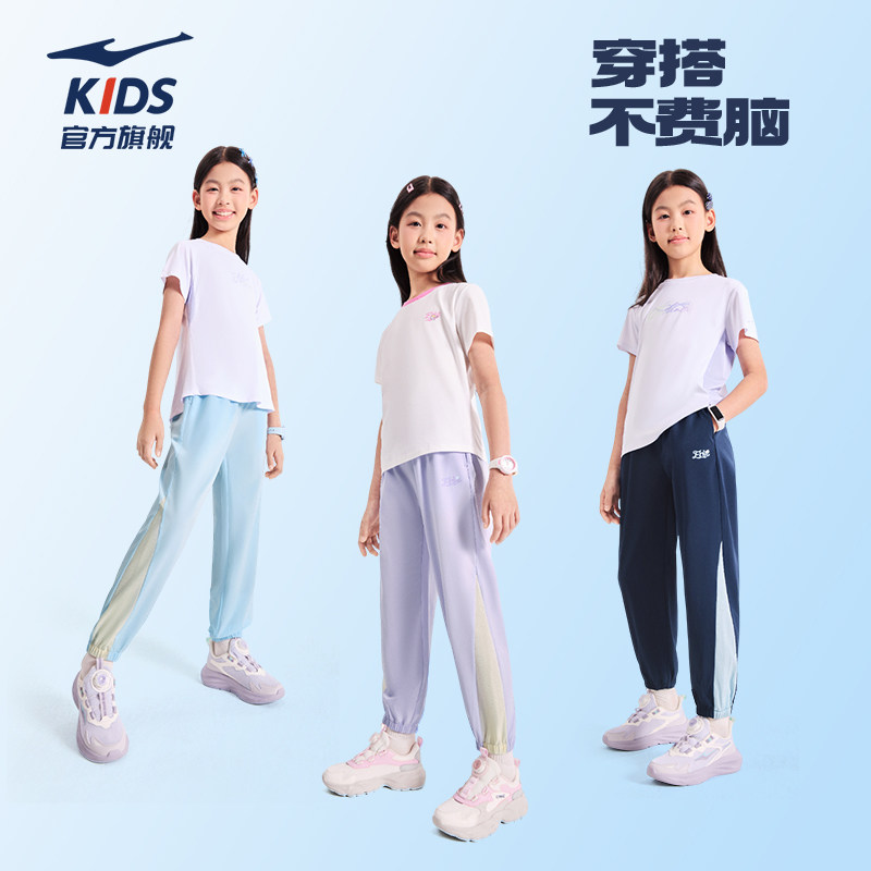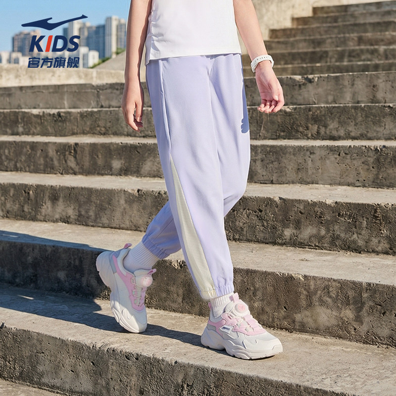 鸿星尔克童装儿童运动裤女童防蚊裤子学生夏季透气速干休闲裤长裤