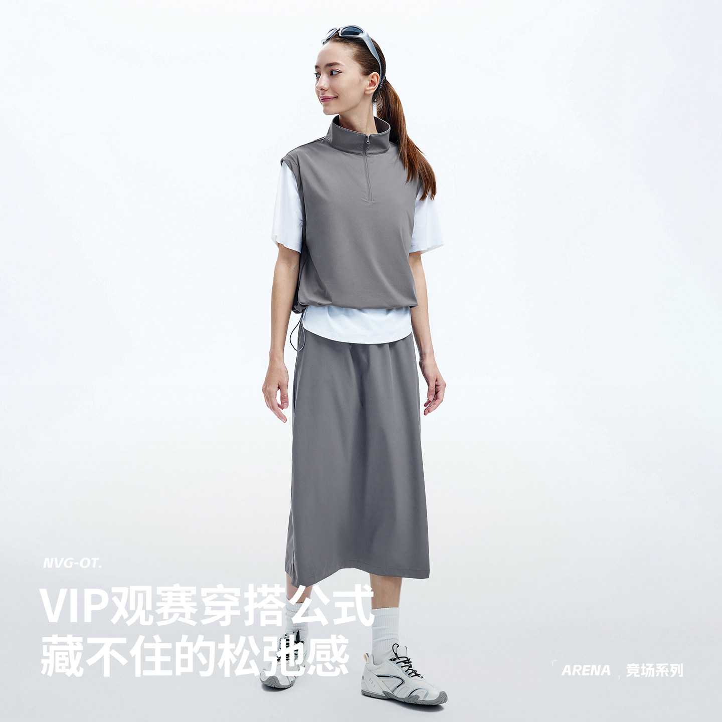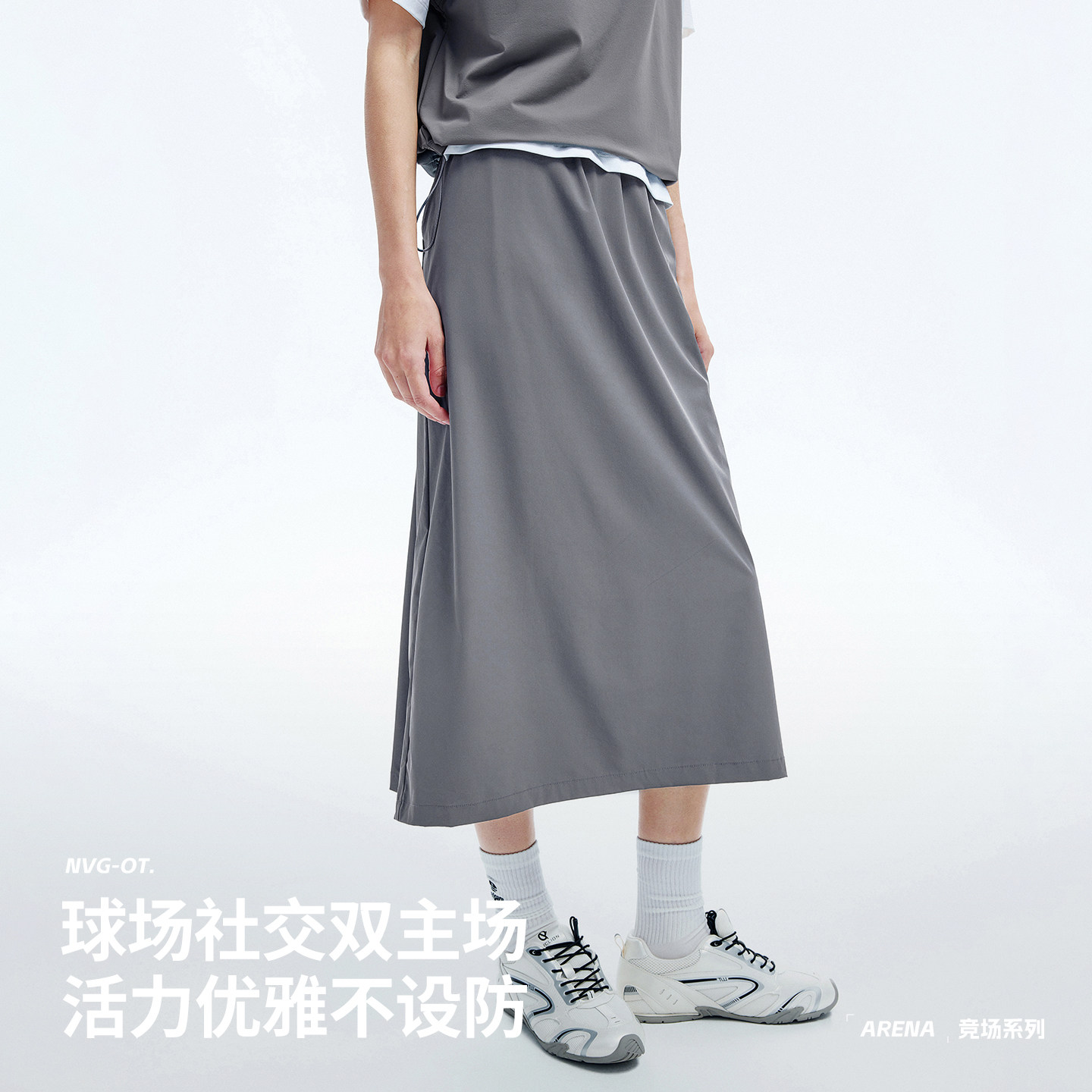 森马半身裙女夏季松紧腰肌理垂感分割A字裙宽松松弛感山本风长裙