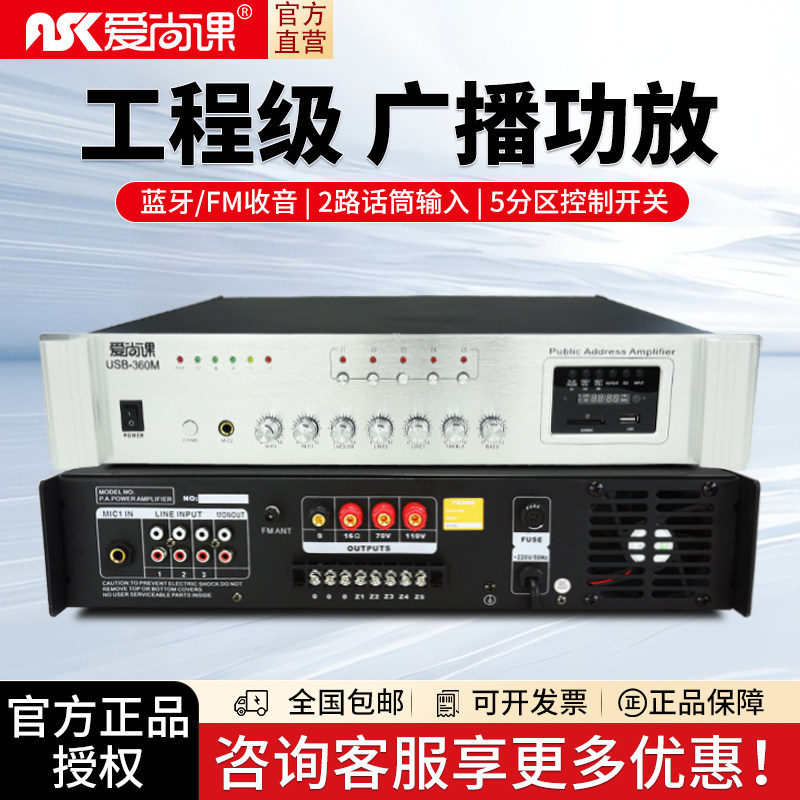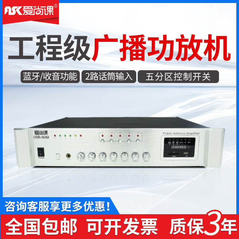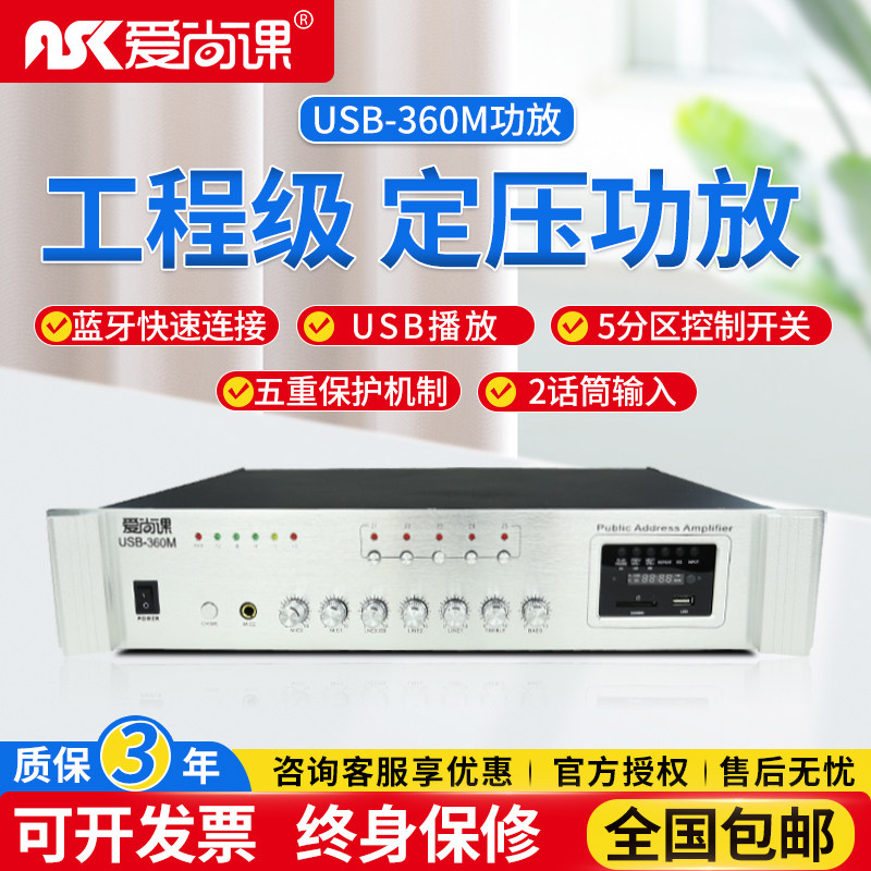 爱尚课 USB-360M蓝牙定压功放机吸顶天花喇叭公共广播系统360W