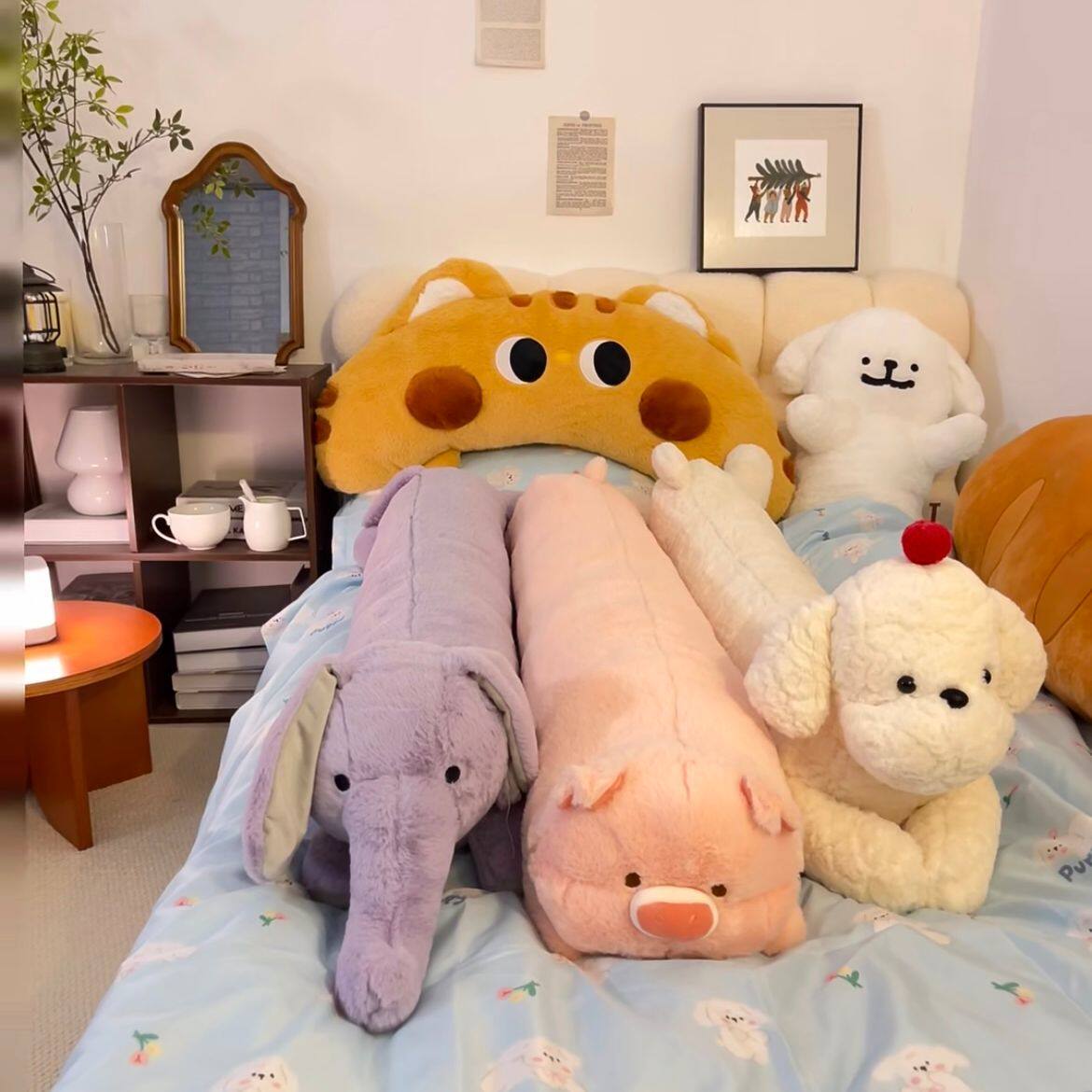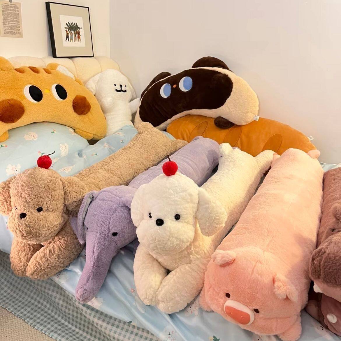 狗狗长条抱枕可爱河马公仔兔子毛绒玩具猫咪床上女生夹腿侧睡玩偶