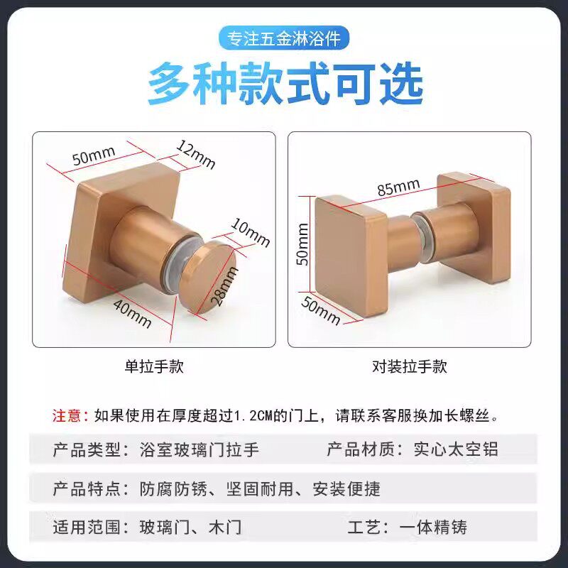 实芯玻璃门单孔拉手浴室淋浴房展示柜铝合金玻璃柜子平开门小把手