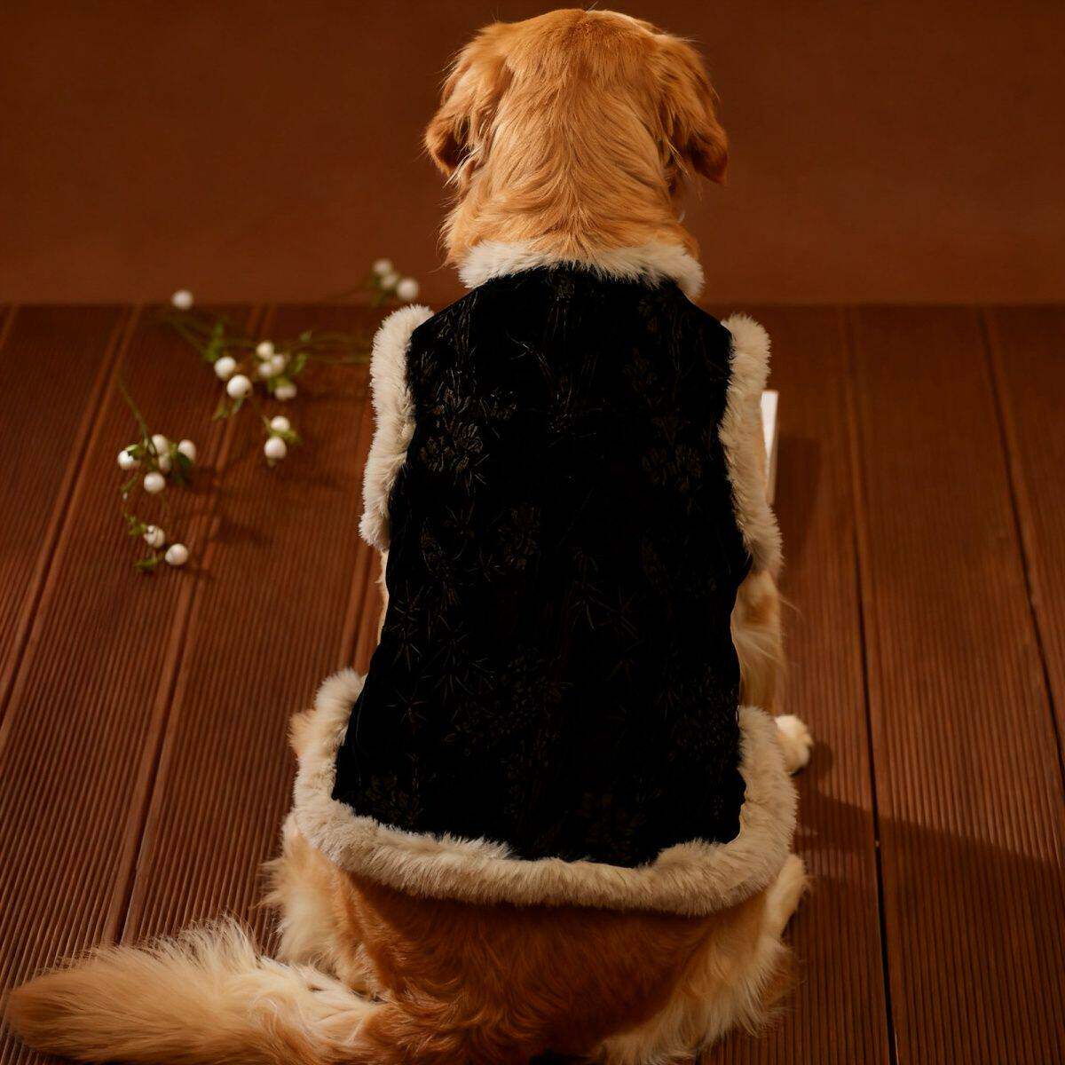 新中式马甲国风唐装复古黑色唐装中大型宠物柴犬边牧金毛拜年服