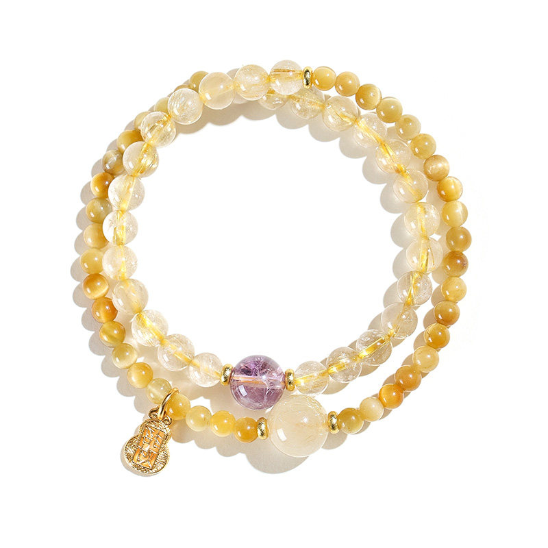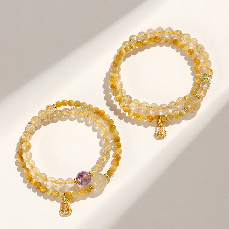 【自营】daisy beauty天然金发晶招财串珠双圈手链女国潮手串女