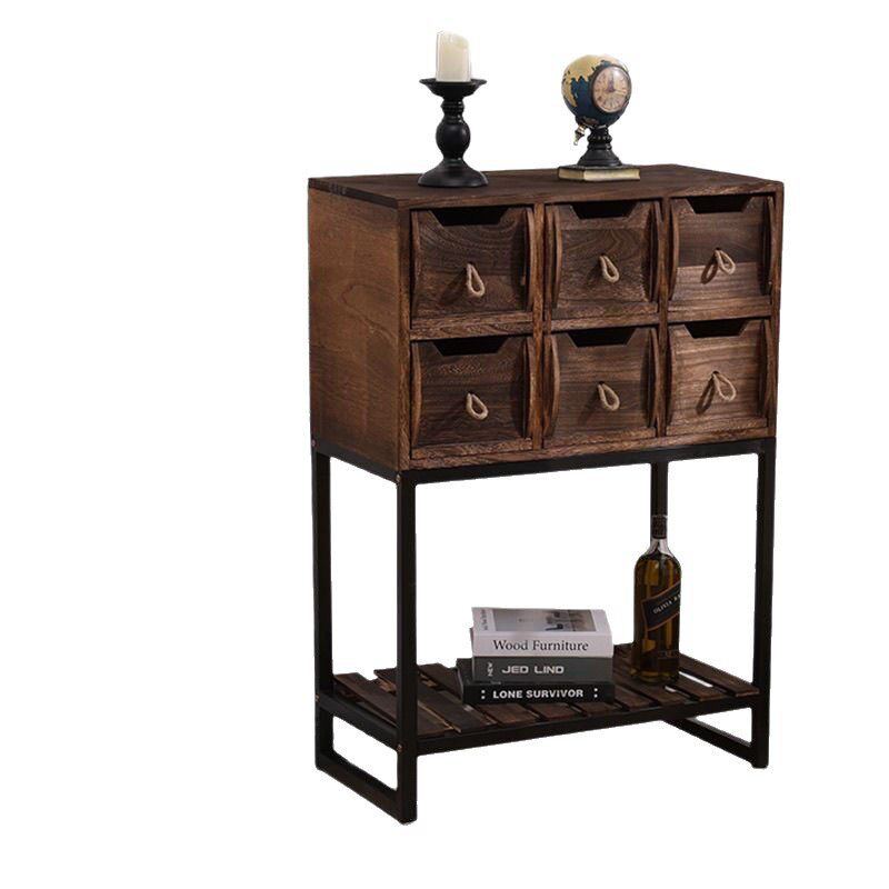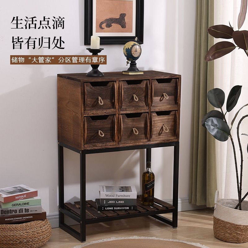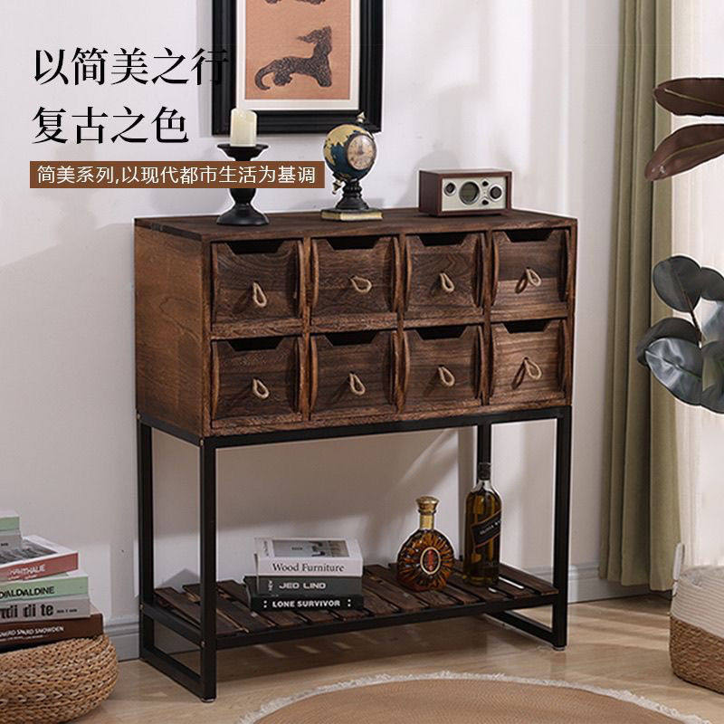 复古客厅玄关柜子阳台实木铁艺收纳架斗柜抽屉柜落地储物架置物架