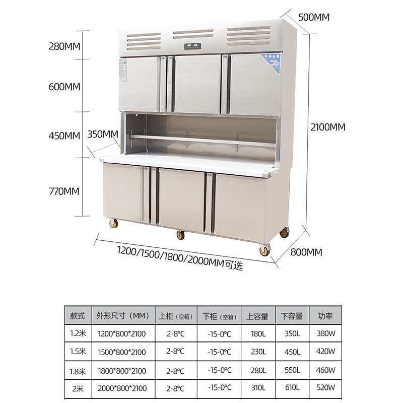 风冷直冷子母柜商用上冷藏下冷冻四门六门展示柜保鲜工作台式冰箱