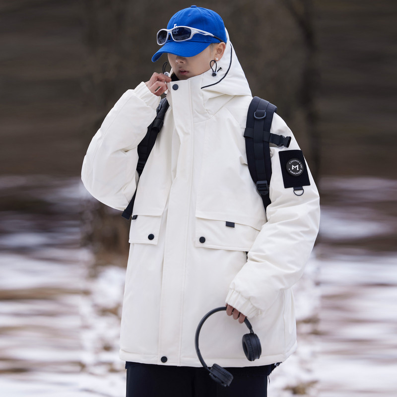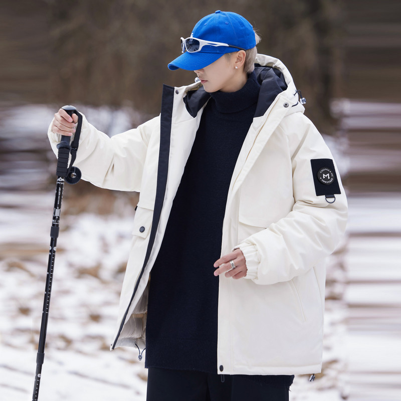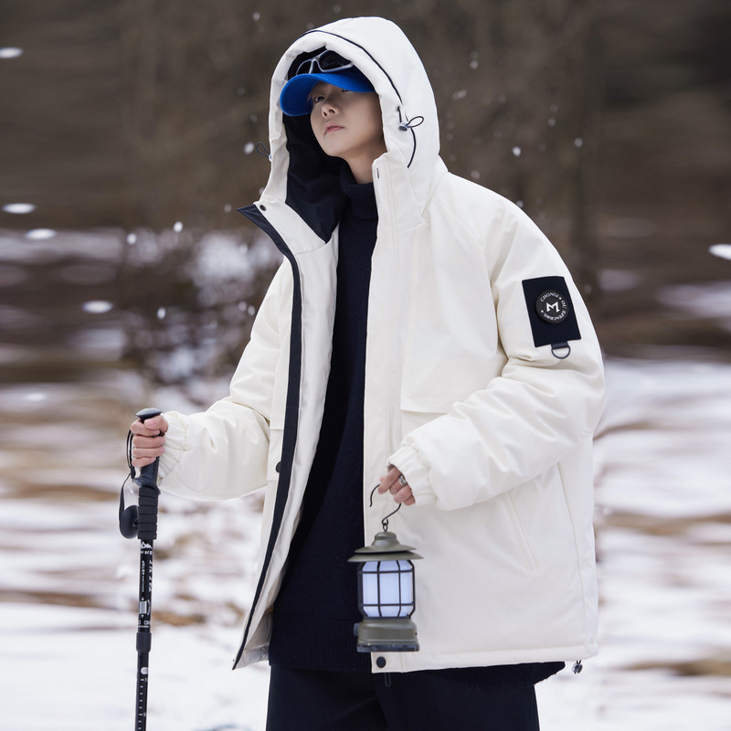 雪中飞2025秋冬新款男女同款短款连帽羽绒服情侣中性工装宽松保暖