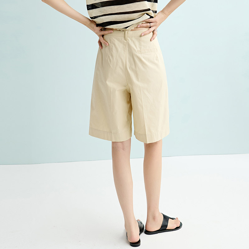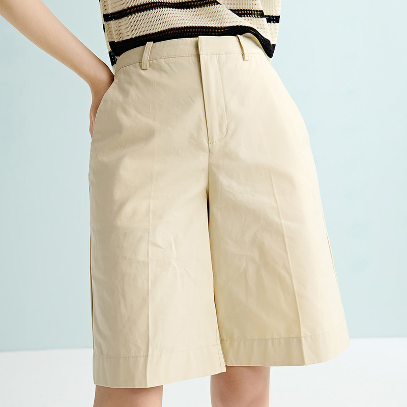 晚白2026年春夏新款时尚简约全棉裤子纯色直筒高腰休闲短裤女