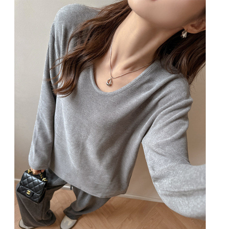 白色德绒V领打底衫女内搭2025新款冬季中长款宽松高级感长袖上衣