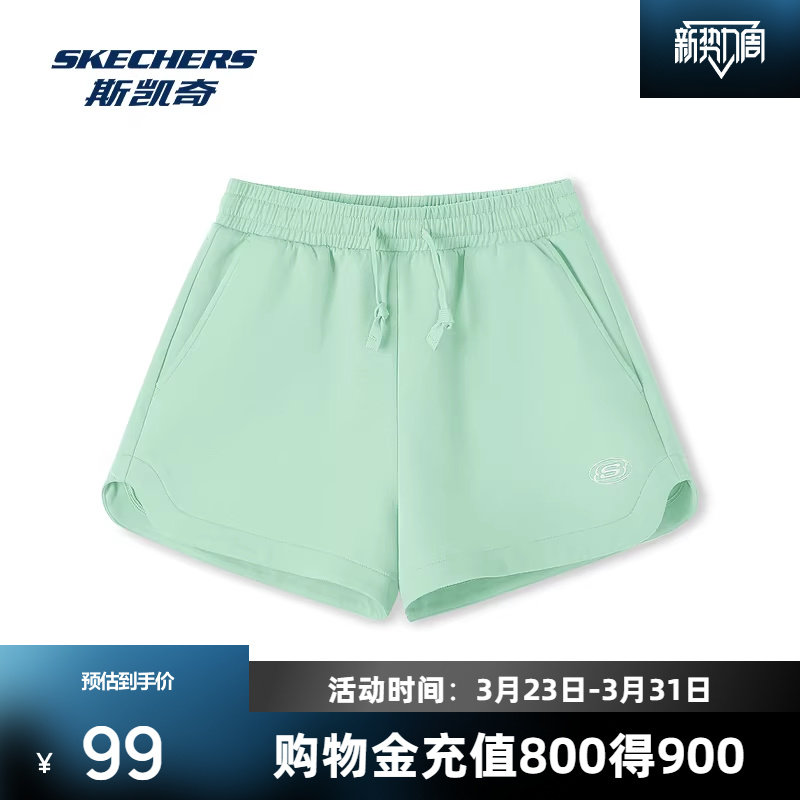 斯凯奇新品女款宽松纯色弹力挺括短裤休闲运动百搭柔软