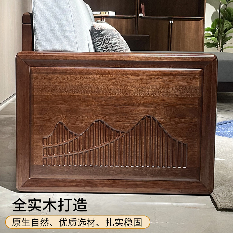 新中式乌金木实木沙发组合大小户型客厅冬夏两用别墅现代储物家具