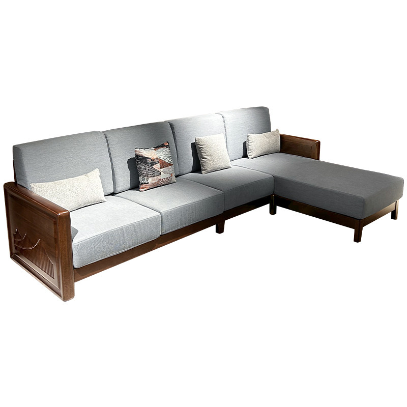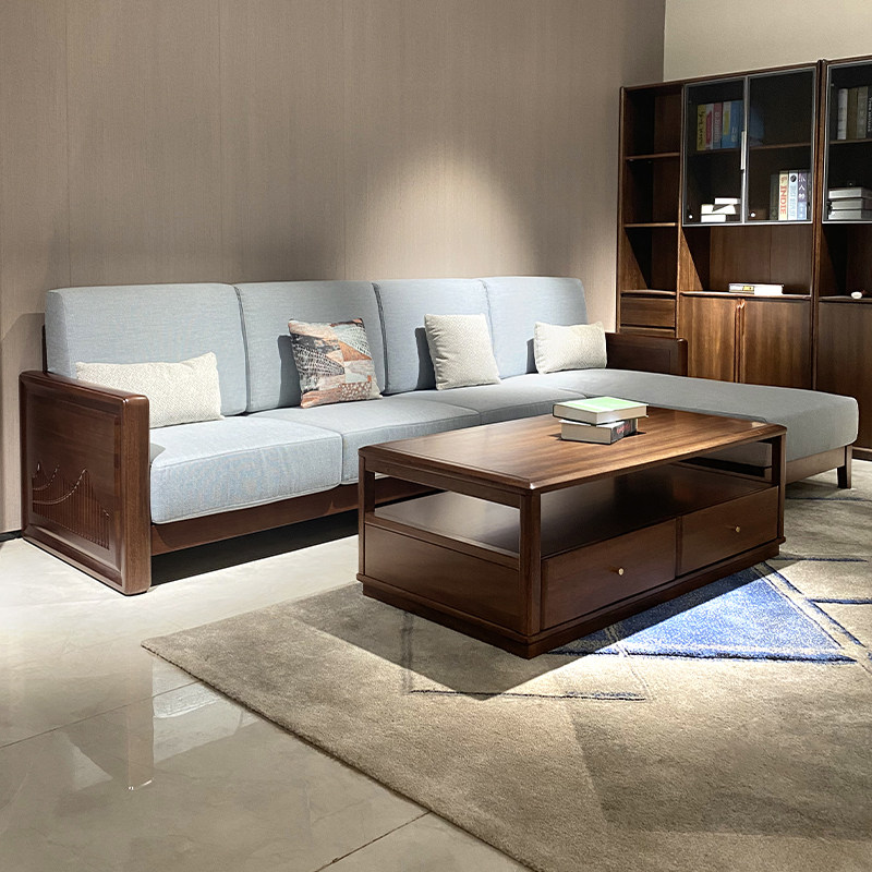 全实木沙发现代简约胡桃木转角沙发客厅小户型家用布艺组合沙发