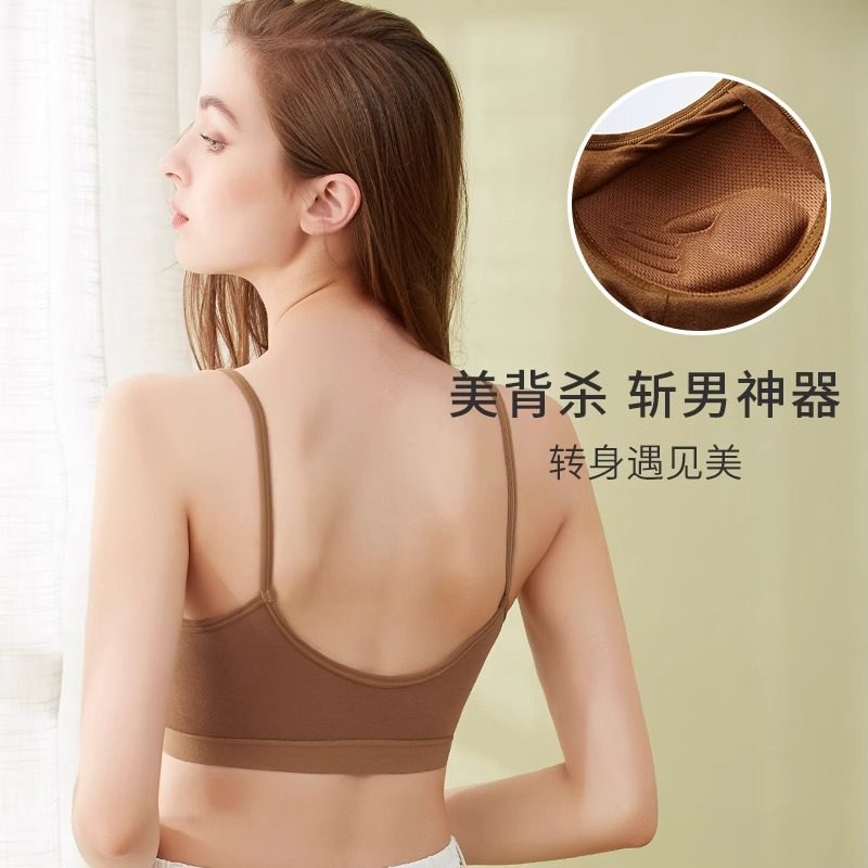 无痕美背抹胸内衣女小胸聚拢可外漏细肩带一体固定杯背心式文胸罩