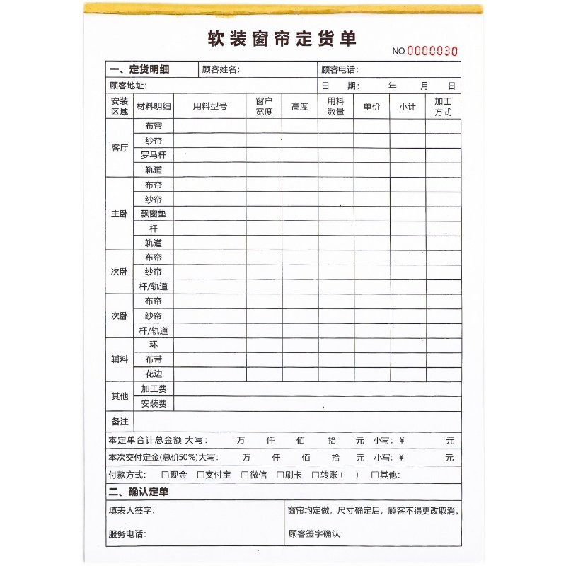 软装窗帘定货单软装布艺壁纸订货开单本窗帘销售明细表量尺报价单