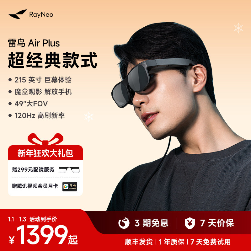 雷鸟Air Plus智能AR眼镜215英寸高清观影49°大FOV支持iPhone15直连vision pro平替
