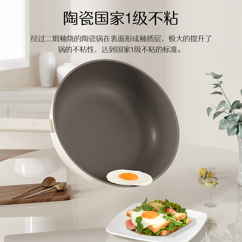 九阳陶瓷不粘锅钛锅家用平底炒锅电磁炉专用炒菜锅官方旗舰正品炊