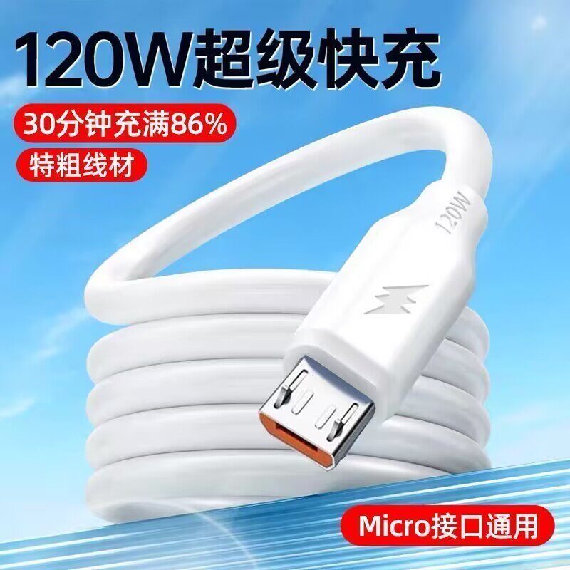 加粗安卓数据线120W大功率USB通用充电线快充适用小米oppo华为荣耀三星vivo酷派手机加长蟒蛇线通用Micro