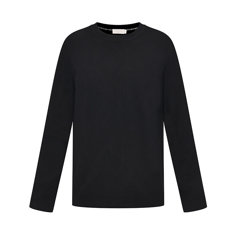 RARE威雅男装 2025秋冬新款百搭棉打底衫肌理提花男士黑色长袖T恤