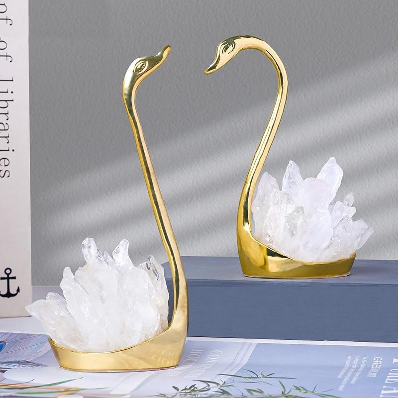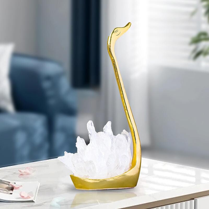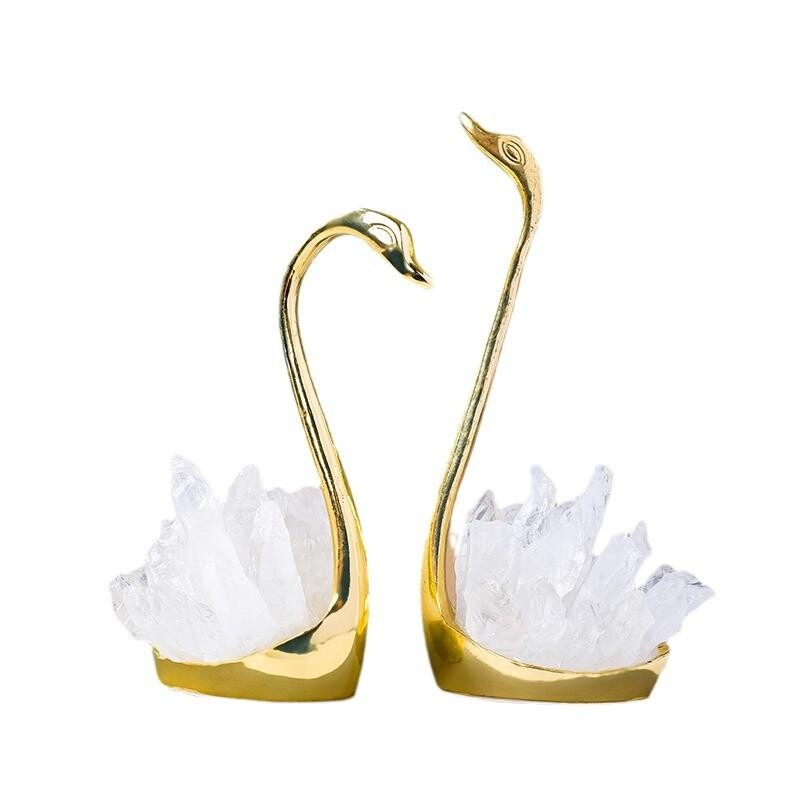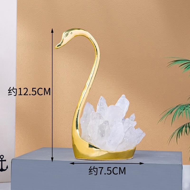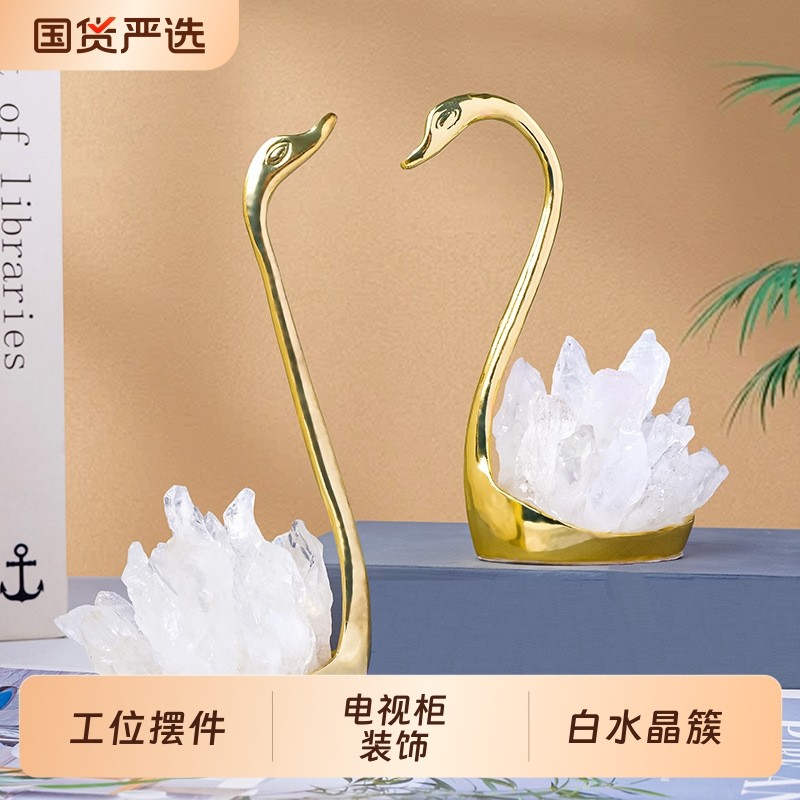 天然白水晶簇原石矿石天鹅欧美风格创意情侣摆件酒柜电视柜装饰