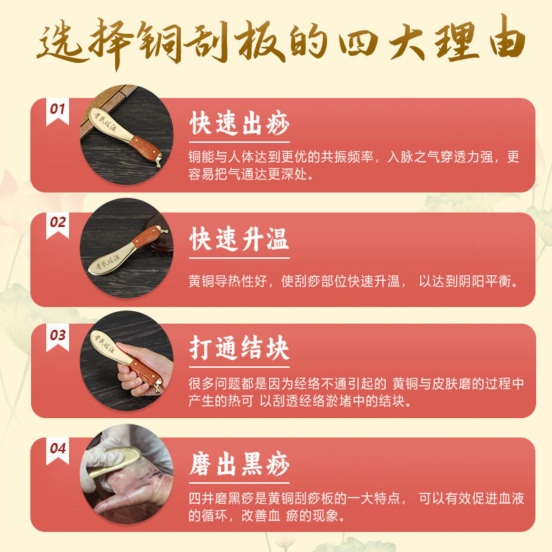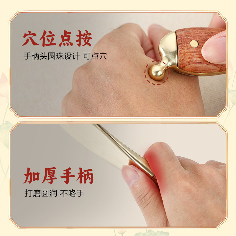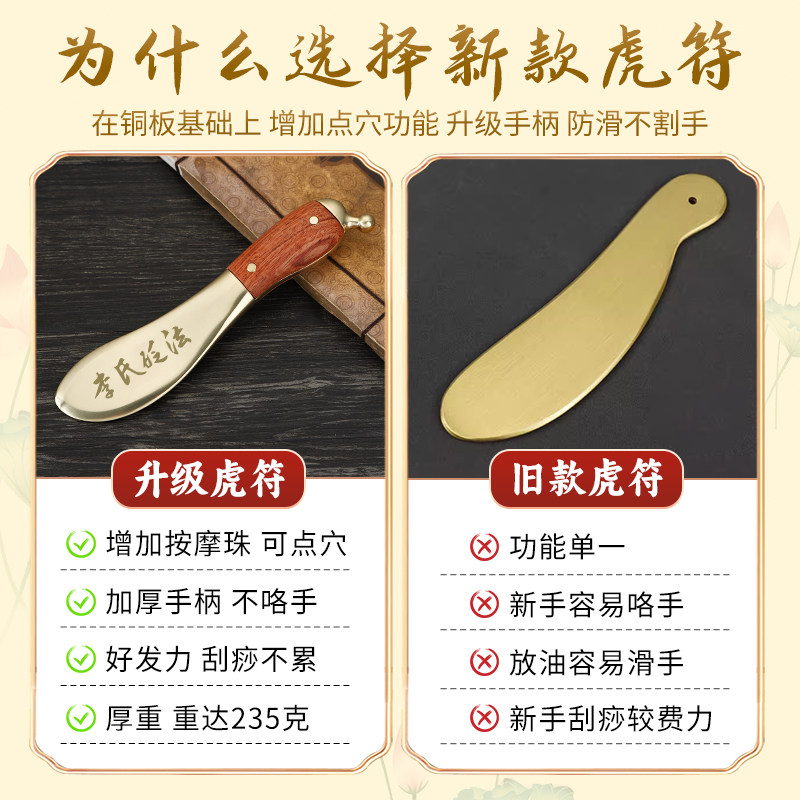 李氏砭法黄铜刮痧板纯铜虎符砭点穴两用多功能背部全身通用刮痧刀