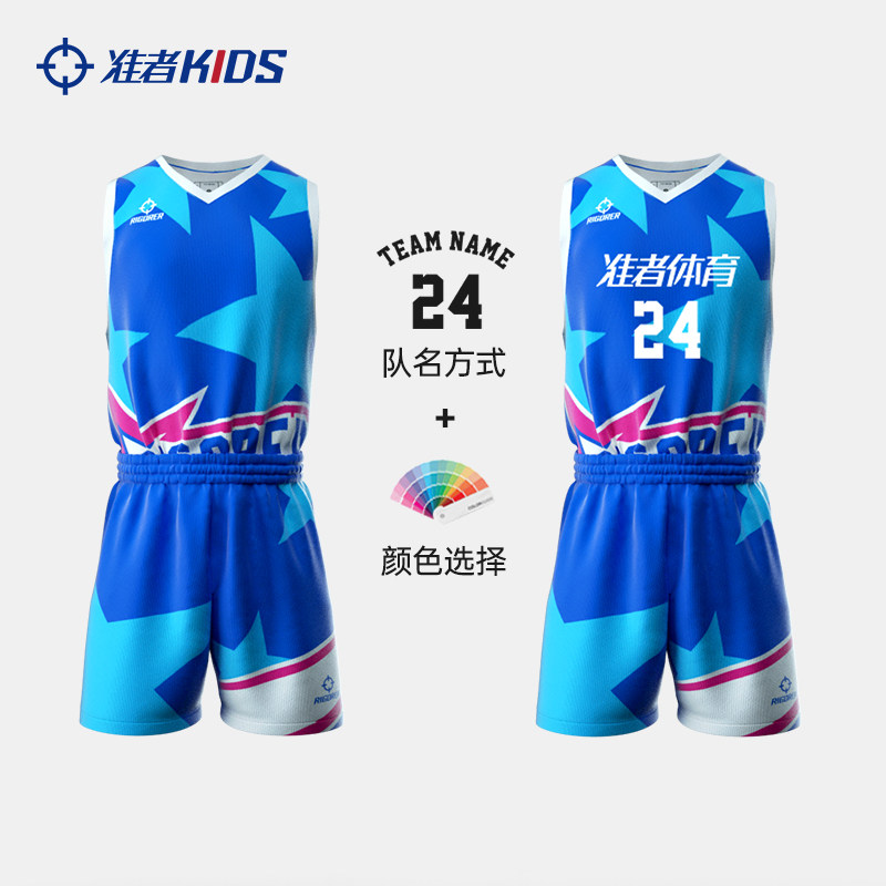 准者儿童定制篮球服10A抗菌数码印高弹透气篮球比赛专用球服队服