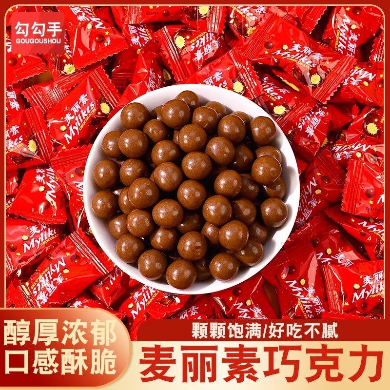 麦丽素巧克力夹心豆脆年货小零食代可可脂红色新年袋装生日结婚