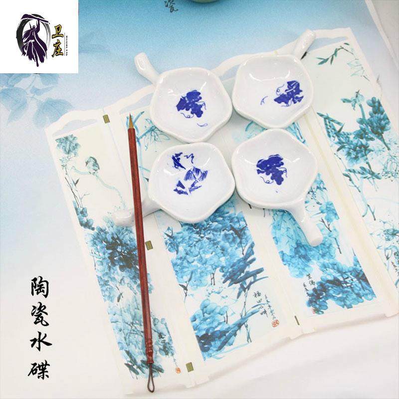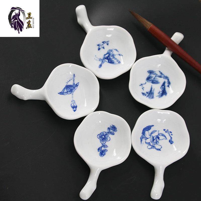 厂家毛笔水碟 陶瓷两用笔洗笔搁 文房四宝墨碟 梅花水碟笔架