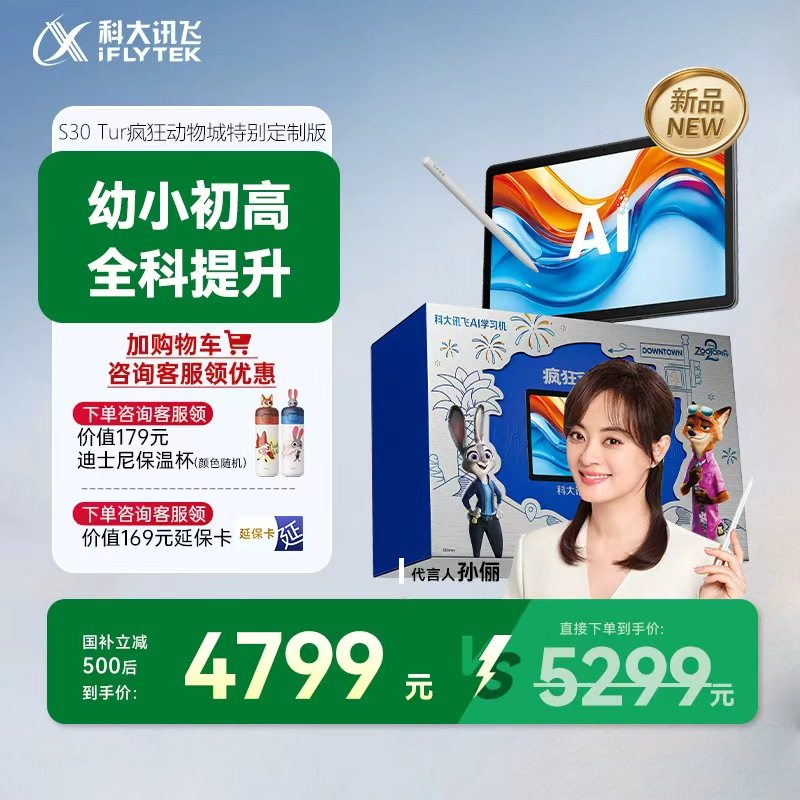 【全国补立减500元】科大讯飞AI学习机S30 Turbo疯狂动物城特别定制版智能学生平板小中高英语平板官方旗舰店