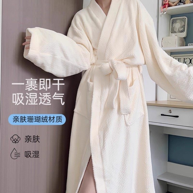 浴袍女款浴巾吸水速干珊瑚绒可穿男士成人秋冬非纯棉长袖浴衣睡袍