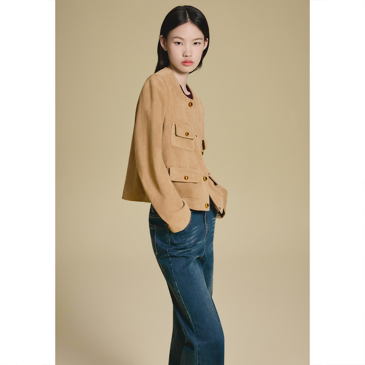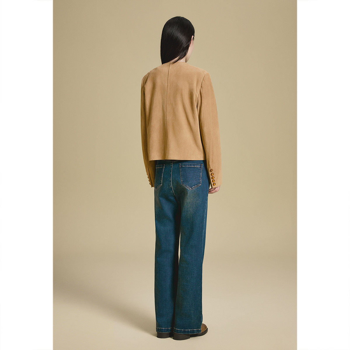 PSALTER诗篇复古驼色美拉德羊反绒小香风外套皮衣2025秋款