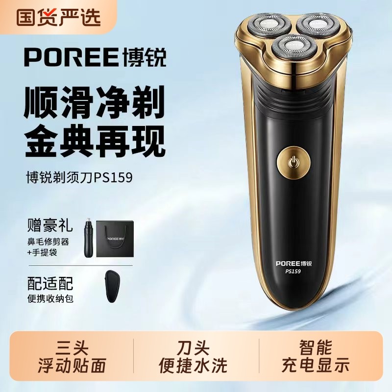 博锐剃须刀电动男士刮胡刀胡须刀刮胡子刀快充便携水洗礼物正品