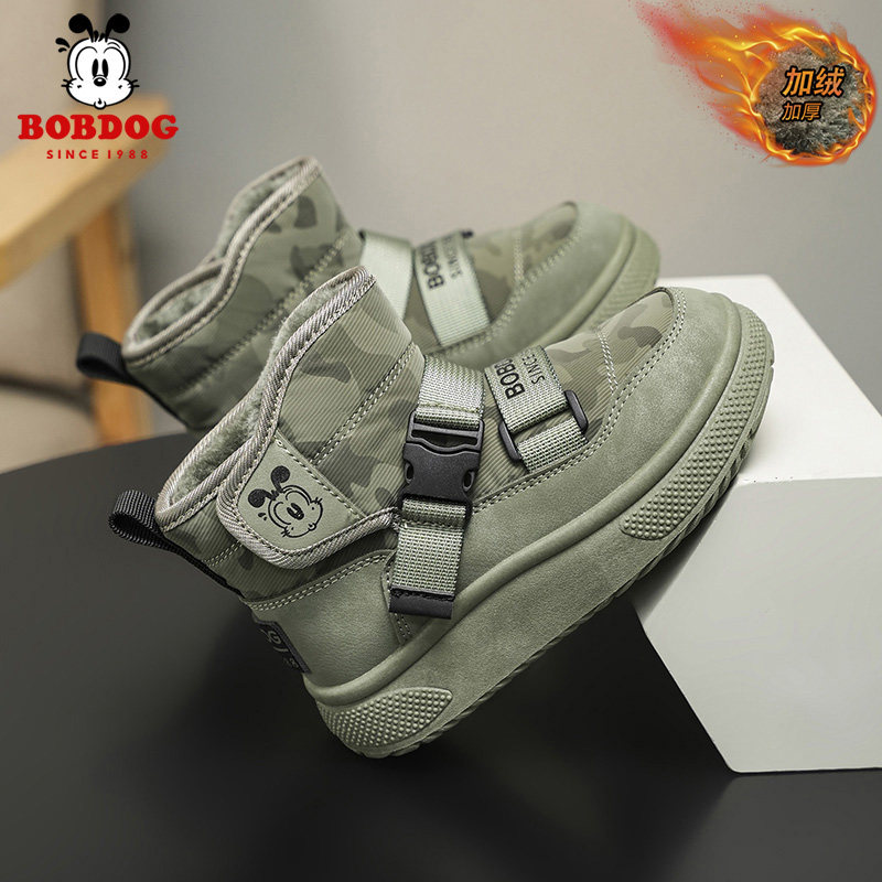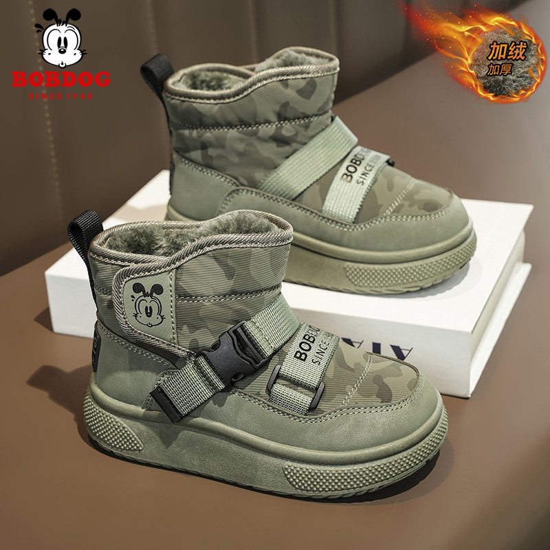 巴布豆儿童雪地靴冬季加绒保暖儿童大棉鞋2025新款女童加厚棉靴子