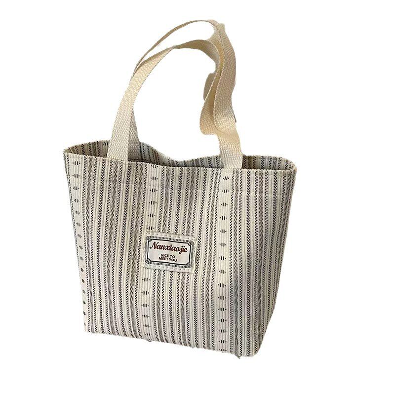 日式包包女2025帆布包条纹手拎单肩包女托特通勤书包手提休闲白色