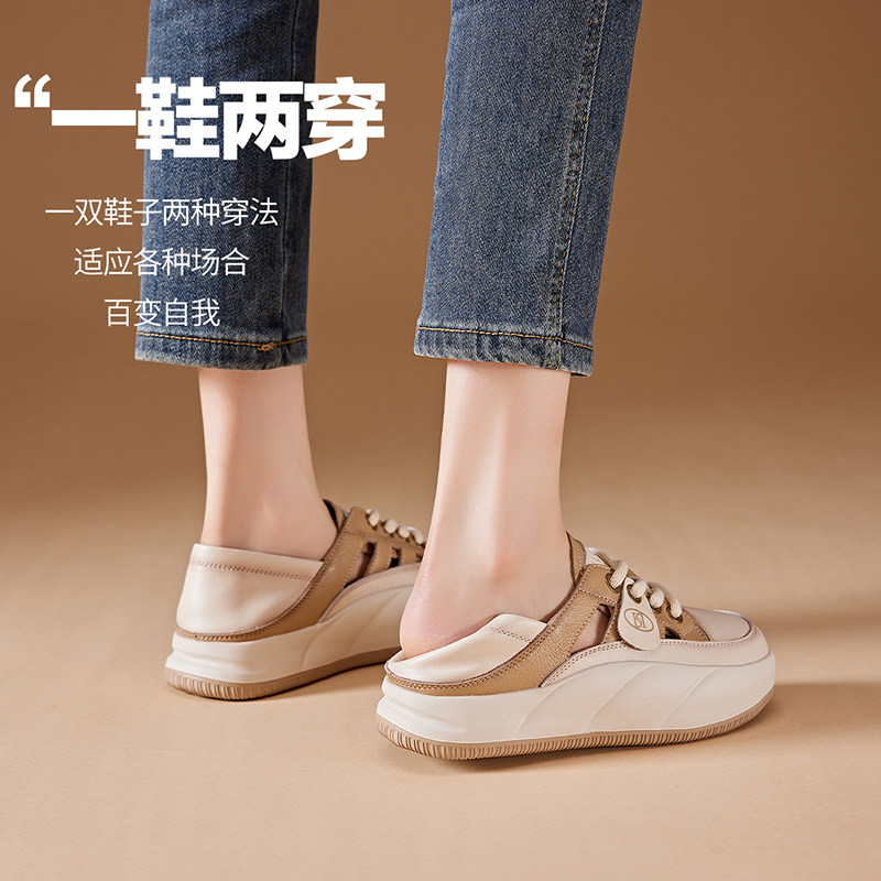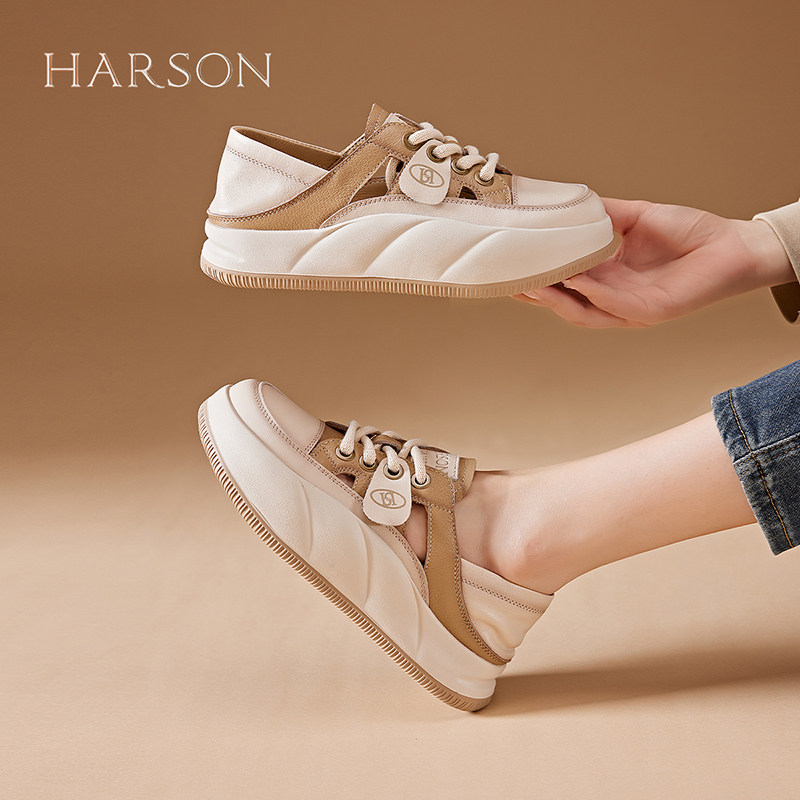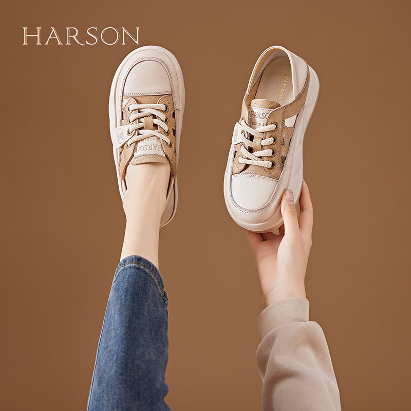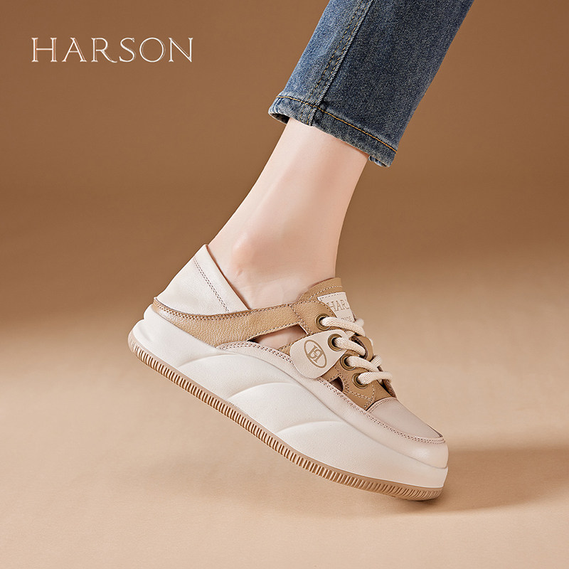 哈森包头镂空运动凉鞋女夏季透气女鞋真皮复古老爹鞋厚底丑萌凉鞋