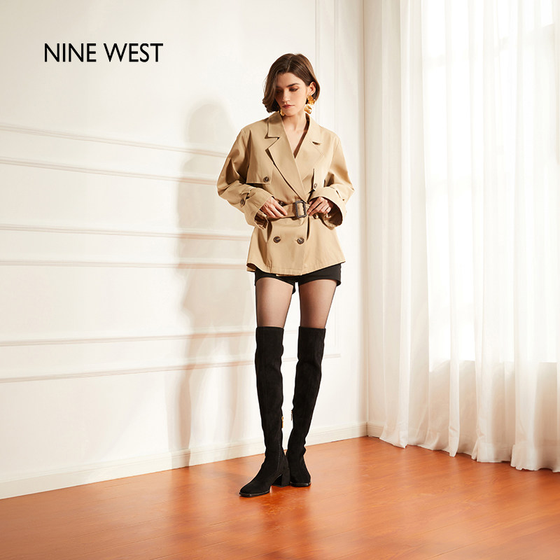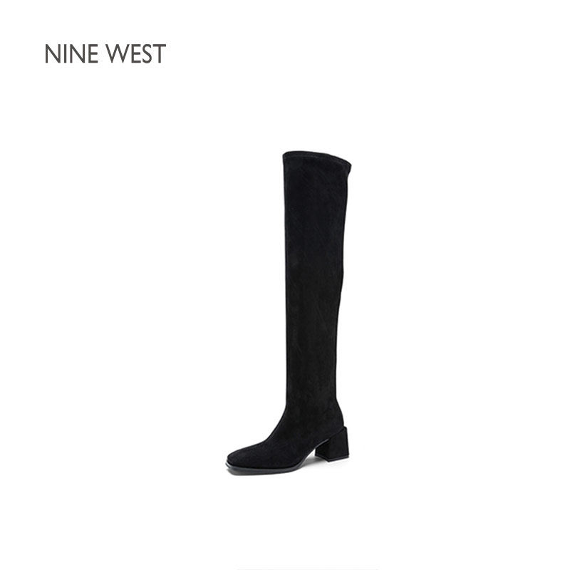 韩雪同款Nine West/玖熙不掉筒过膝靴女秋冬加绒瘦瘦靴高跟长筒靴