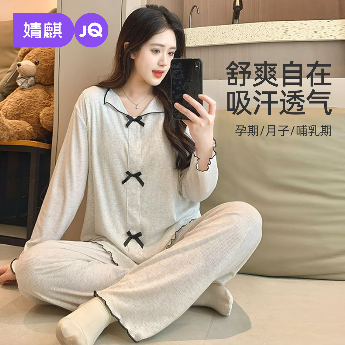 婧麒云慕丝月子服产后秋冬季纯哺乳家居服棉怀孕产妇孕妇睡衣套装