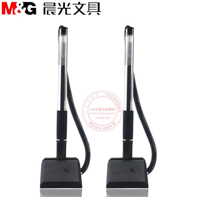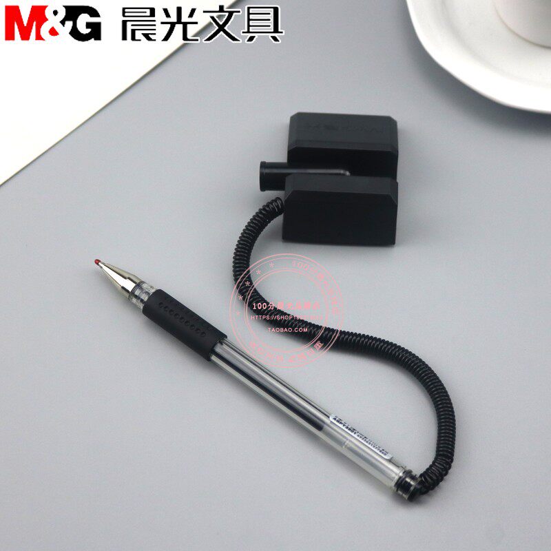 晨光台笔办公中性笔柜台桌面可粘贴固定带绳黑色签字笔 AGPY3901