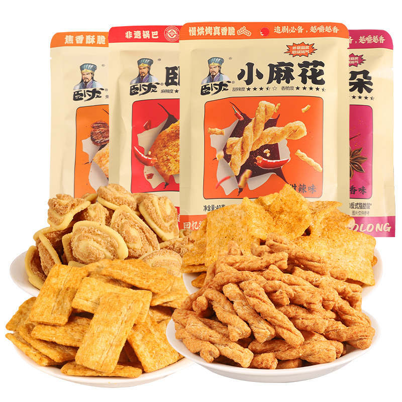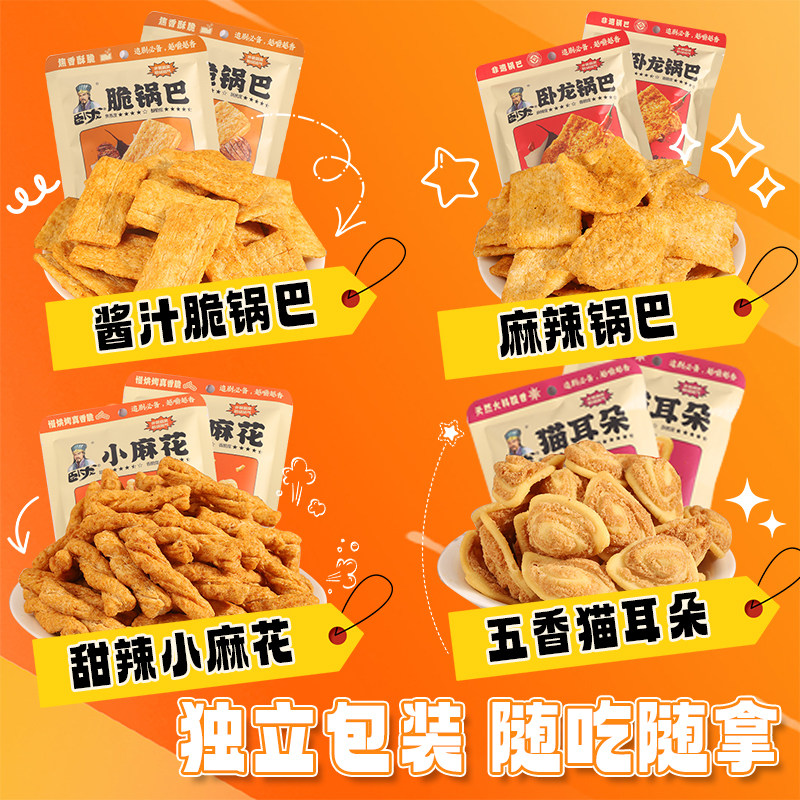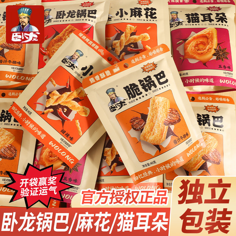 卧龙锅巴小麻花猫耳朵解馋零食40g*4包
