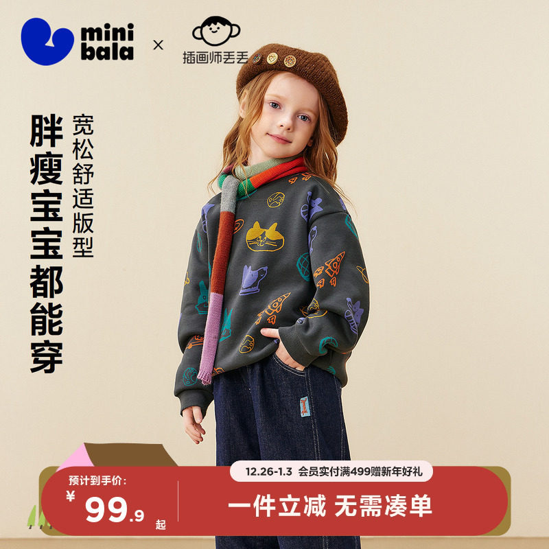 [艺术家联名]迷你巴拉男女童长袖卫衣2025冬新品儿童保暖萌趣上衣