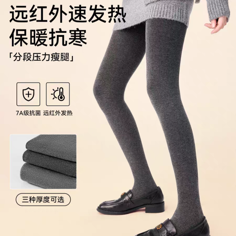 菇娘家热压连裤袜黑色打底裤大码女秋冬新款显瘦加绒灰色羊毛裤袜